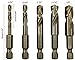 【Integrated Hex Shank】1/4-inch hex shank compatible with standard and quick change chucks and drivers. 5/16, 3/8 and 1/2-inch drill bits come with one piece 1/4-inch hex shank