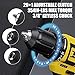 【1/4” HEX CHUCK & VARIABLE SPEED】The quick release chuck allows you to install or replace bits quickly. Easily control the speed from 0-1200 RPM, 0-2500 RPM, and 0-3200 RPM with the variable speed trigger to work on delicate surfaces. Each speed corresponds to a fastening torque of 710 In-lbs, 1330 In-lbs, and 2000 In-lbs for different applications. And the AUTO STOP provides added control during breaking away fasteners.
