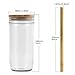 PRODUCT CONFIGURATION: Glass cups set includes 2 Wide Mouth Mason Jar 22 OZ,2 nature bamboo lids, 2 airtight plastic white lids with seal cotton, 2 reusable stainless steel straws, 1 cleaning brushes, Unique modeling design, Very practical combination suit.