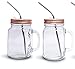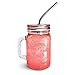 HIGH QUALITY JARS: 2 quality GLASS mason jars with handles accented by colored metal lids and 2 Reusable Stainless Steel Straws