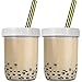 Premium Boba Tea Cup Set – This fun smoothie cup with straws bundle comes with everything you’ll need to enjoy crafted homemade boba, shakes, and smoothies including 2 glass Mason jars, 2 reusable straws sized 8.5" x 0.5", 2 steel lids, and 2 plastic lids.