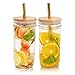 Package Include: This drinking glass set comes with 2pcs 24 oz wide mouth boba tea cup, 2pcs bamboo mason jar lids, 2 stainless steel straws. You can easily use this with different combinations of accessories to suit your different needs.