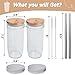 🍹WIDE OPENING & BOBA SIZED: Our Reusable Smoothie Cups owns 3 3/8” wide opening for easy pouring & filling with ice cube. The reusable bamboo lids fits all wide-mouth mason jars. The wide angled straws(230mm length, 12mm diameter) are perfect for easily sipping pearls in bubble tea and also great for smoothies. With stylish and modern crystal clear look, this glass cups set of 4 with bamboo lids and straws are highly appreciated in cafes, bars, kitchens, breweries, restaurants, families, etc.