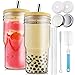 🥤PORTABLE & MULTIFUNCTIONAL: The 24oz Reusable Boba Cup perfectly fit in your hand and standard car cup holder, portable to carry around for travel, on-the-go, office, picnic, etc. The mason jar drinking glasses cups with bamboo lids and straw serve & allow for a beautiful display for all beverages, like boba tapioca pearls, bubble tea, water, smoothies, iced coffee, juices, milkshakes, protein shakes, etc. Without imprints, you can DIY a unique glass boba cup with cute stickers or decoration