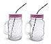 HIGH QUALITY JARS: 2 quality GLASS mason jars with handles accented by colored metal lids and 2 Reusable Stainless Steel Straws