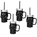 Set of 4 skull-shaped black glass drinking jars with screw-top lips and reusable straws