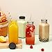 Beautiful Juice Bottles: Our glass juice cups with lids are resistant to high and low temperatures and can be placed in the refrigerator to keep liquids cold. Take off the lid or use the lid with holes and these glasses can be used as straw cups, whether for parties or everyday gatherings, these are great for smoothie cups, milkshake cups, milk cups, juice storage cups.