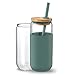 CLASSIC CAN SHAPE GLASS TUMBLER: 20 oz glass cups with cambridge blue silicone protective sleeve, glass with 1 bamboo lids, 1 silicone straws. glass is 7” high and 3” wide. Classic but elegant cup shape and beautiful color make you fall in love with it just at a glance.