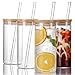 Product Includes: 4 pack 20oz straight glass cups + 4 pack bamboo lids with hole + 4 pcs straight glass straws + 2 pcs straw brushes. The cups are wrapped in thick foam and packed in a corrugated box to ensure transport safety.