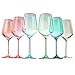 Colored Wine Glasses: YOUEON set of 6 wine glasses come in pink, green, blue color, measuring 3.5"D x 6.6"H with a capacity of 10 oz. Sufficient quantities and multi colors can meet you household drinking demands.