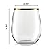 FINE DISPOSABLE STEMLESS WINE GLASSES: Style and elegance were not compromised when making these stemless disposable wine glasses. The shape allows your wine to aerate, and the smooth, gold rim is gentle on your lips and adds a touch of elegance.