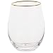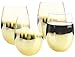Set of 4 modern brass plated metallic rim accent stemless wine glasses add beauty and luxury to any dining or tasting experience