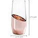 Set of 4 modern copper plated metallic rim accent stemless wine glasses add beauty and luxury to any dining or tasting experience