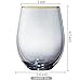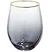 Deluxe stemless wine glasses with translucent smokey gray finish and brass tone rim for your home, café or restaurant drinkware