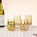 4 piece set of stemless wine glasses with brass-plated textured bottom accent for both alcoholic and non-alcoholic beverages