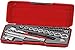 Regular sockets - 1/4" drive - 6 point metric: 4, 5, 5.5, 6, 7, 8, 10, 11, 12, 13mm. 1/4" drive accessories: FRP ratchet, universal joint, 2" and 3" extension bars, coupler adaptor. Regular sockets - 1/4" drive - 6 point SAE: 3/16", 7/32", 1/4", 9/32", 5/16", 11/32", 3/8", 7/16", 1/2"