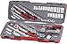 Wrenches: 8, 9, 10, 11, 12, 13, 14, 15, 16, 17, 18, 19mm combination spanners, spanner ring, 8" adjustable wrench. Deep sockets - 1/4" drive - 6 point: 6, 7, 8, 10, 12, 13mm. Regular sockets - 3/8" drive - 6 point metric: 8, 9, 10, 11, 12, 13, 14, 15, 16, 17, 18, 19, 21, 22mm. Regular sockets - 3/8" drive - 6 point SAE: 5/16", 3/8", 7/16", 1/2", 9/16", 5/8", 11/16", 3/4", 13/16", 7/8"