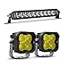 【KIT INCLUDES&PROVEN RELIABILITY】3'' Yellow Pod Lights Driving Beam, Amber 32 inch LED Light Bar, Mounting Brackets and hardware. With 45 Days of Complete Purchase Protection and 3 YEARS of QUALITY ASSURANCE. LASFIT professional team provides you with good service in the CA. USA