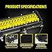 ➣80pcs Led Chips & Spot Flood Combo Beam➢ Sammanlight latest 12-inch triple row yellow LED light bar comes with a few new perks! Equipped with 40pcs 15°spot lights and 40pcs 170°flood lights, spot and flood combo beam providing a longer and wider lighting view. Enjoy the powerful 18,000LM and 180W output, less Fatigue for you as the driver.