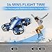 Extended Flight Time with 2 Drone Batteries: Keep the flying quadcopter drone going with the (2) included rechargeable drone batteries for 16 minutes total flight time; ultra portable mini drone measures 5” x 5” and includes (4) spare propellers, screwdriver, mini spanner, USB charging cable, and drone remote control (requires 3 AAA batteries - not included)