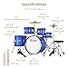 🌳EXCELLENT MATERIAL WITH GREAT SOUND: This drum kit is crafted utilizing with genuine Poplar hardwood shells with high strength, uniform vibration and bright sound. Adopted with 6 drum lugs structure, using electroplated technology fully plating drum ring, drum lugs and pedal, providing larger and deeper resonance chamber for the ultimate acoustic experience.