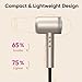 [Ultra Fast Drying Hair Dryer] Equipped advanced patented brushless motor, 100,000 RPM high-speed, wind speed reaches 22.5m/s, 10L/s airflow, almost about 12 wind levels, ultra high speed hair dryer ever, which is 3X faster than traditional hairdryers. Help you fast dry hair in a short time and last styles. Motor lasts 2000hrs, overall service life up to 17 years.