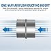 One-way airflow ducting insert: Back-flow valve with 2 spring-loaded wings prevents the reverse airflow movement through the ventilation duct when the ventilation system is turned off