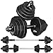 🏋️♂️【Adjustable Weights】- Each dumbbell 33lbs max, if you assemble it as a barbell, total weight up to 66lbs. You're free to customize the weight setting to meet the training needs. Made of durable steel mixed substance and TPU material, the fitness dumbbells kit provides you with various weight options, ranging from 9.6lbs to 66lbs