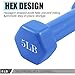 COLOR CODED NEOPRENE DUMBBELL WITH ANTI ROLLING HEAD: Color coded free weights neoprene dumbbell with printed weight number on the end caps for easy identification. Hexagonal head prevents rolling away from the storage place or during your exercise