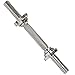 DUMBBELL BAR: Sunny’s 14-inch threaded dumbbell bar is made of solid steel in a chrome finish that weighs only 4 Ibs. The fully adjustable design makes plate attachment and removal easy