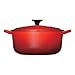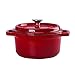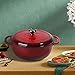 Round, 2-3/4-quart French oven with hard-wearing, non-reactive enamel in cherry red--can be used in the oven or on the stovetop