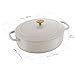 Cast iron construction with rich cream-colored enamel interior ensures exceptional browning and heat retention, and distribution