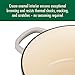 Cast iron construction with rich cream-colored enamel interior ensures exceptional browning and heat retention, and distribution, no seasoning required
