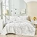 Reversible quilted lightweight bedspread set - The backside is a light grey background with white leaf outlines - thin, lightweight, straight edge, cloud stitching