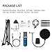 ♪【condenser microphone bundle Set 】♪ For all Laptop, PC and Mobile phones. Strong output, no distortion, low power consumption. PACKING LIST: Condenser Mic + Adjustable Scissor Arm Stand + Metal Shock Mount + Pop Filter +1* 5/8’’ to 3/8’’ Adapter And Reducer Union , 1* Microphone Retaining Clip,1* Nut ,1* Condenser Microphone,1* Desk Tripod Stand, 1* Pop Filter,1* Support Leg ,1* 118 inch (3m)USB to Type B Cable