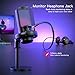 Versatile adapter fits 3/8-inch and 5/8-inch threaded setups, compatible with most mic stands or boom arms. The internal pop filter helps block plosive sounds from hitting the mic, and you can monitor the mic via the headphone jack.
