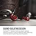 SOUND-ISOLATING DESIGN: closed-back earpiece design and 7 pairs of eartips - including Comply T-Series memory foam tips - reduce ambient noise levels, enabling safer listening volumes and improving sound quality for a superior audio experience