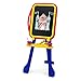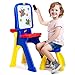 This 4-in-1 arts easel for kids feature a rotating multifunction board with a magnetic dry-erase board on one side and a traditional chalkboard on the opposite side