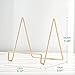 STURDY DESIGN: - Made with wrought iron construction and a matte gold powder-coated finish, this plate display stands features a reliable 8" depth and 4" widened base design, capable of securely displaying a variety of large items such as decorative plates, platters, plaques, photo frames, trays, tiles, cutting boards, cookbook, sign, canvas art, and more.