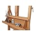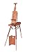 10lb compact, expandable easel ideal for outdoor travelling artists; includes palette and a tin-lined storage drawer; padded leather luggage handle and adjustable leather shoulder straps