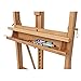 Transportable, sturdy, light-weight folding sketch easel with leather handle adjusts between vertical and horizontal positions, allowing for watercolor or oil; full height 78"