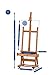 Sturdy H-Frame Studio easel with 4 lockable wheels Includes with storage area below the canvas ledge for tools, brushes and paints; height adjusts with a simple ratchet action