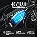 🔋 🔋 [17AH High-capacity Battery] APUS electric bike is equipped with a 17AH high-capacity 48V battery, which can provide you with a maximum riding distance of 40 miles (in pure electric mode) or 70 miles (in PAS mode). APUS can meet your daily riding needs.