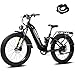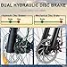 【Hydraulic Disc Brakes & Dual Suspension System】The hydraulic disc brakes system enables the ebike to stop quickly and smoothly when riding at high speed without noise, shortening the braking distance even on a wet road. The electric bike for adults features lockable hydraulic suspension front forks with strong shock absorption helping you pass rough terrain with less effort. Both ensure a safer riding experience.