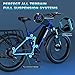 FULL SUSPENSION SYSTEM: The lockable front suspension fork and four-link shock absorber constitute the full suspension system of the EXP electric bike. Make the well-performed ebike guarantees a safer and smoother cycling, and ensure your riding for less bumpy on rough roads.