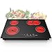 🍷【Fashion Black Glass Cooktop, Easy to Clean】With a black smooth ceramic glass, the 120v 2 burner cooktop looks very modern sleek. Black smooth glass, strong and high temperature resistant, smooth vitro ceramic surface, making the electric cooktop hob very easy to clean. To help with better cleaning, a cleaning scraper is included in the glass stove top package.