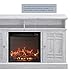 Bring the outdoors in with the rustic look of the Ameriwood Home Farmington Electric Fireplace TV Console for TVs up to 60” wide or 95 lbs. The laminated MDF and particleboard build is a stunning white woodgrain for your rustic space