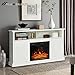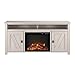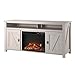 Bring the outdoors in with the rustic look of the Ameriwood Home Farmington Electric Fireplace TV Console for TVs up to 60” wide or 95 lbs. The laminated MDF and particleboard build is a stunning white woodgrain for your rustic space