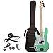 Complete bass guitar combo package: This electric bass guitar kit includes a padded gig bag, shoulder strap, cable, and three picks in assorted colors; everything you need to learn and play a bass guitar!