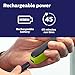 Unique OneBlade technology - Designed for facial styling and body grooming, the Philips Norelco OneBlade trims, edges and shaves any length of hair. It delivers an easy and comfortable shave thanks to a glide coating and rounded tips. And with a cutter that moves at 200x per second, it’s efficient even on longer hairs.